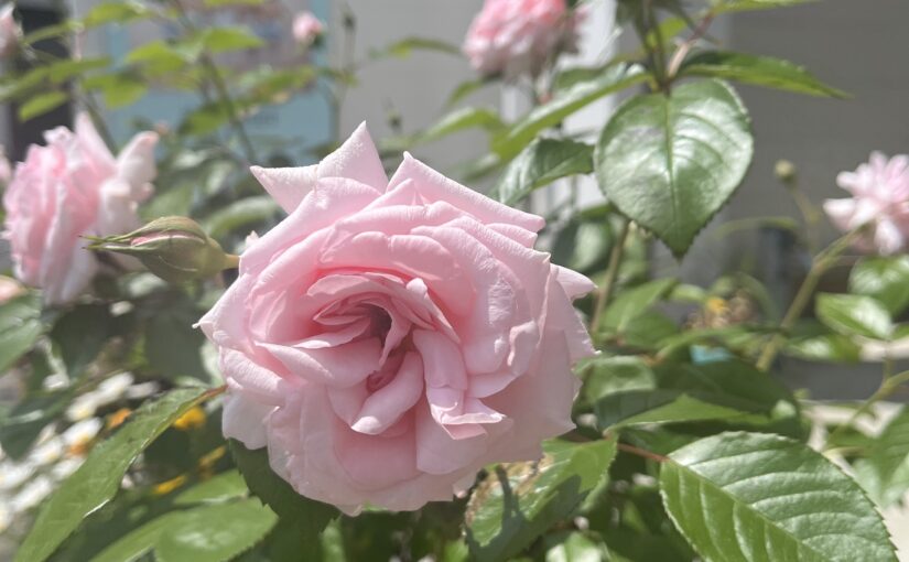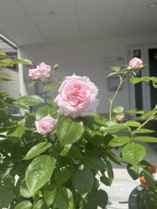 玄関では沢山のお花が咲いています。